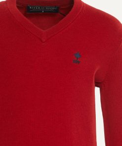River Woods Boys Normal Fit Basic V-neck Sweater Poppy Red Mix | Red