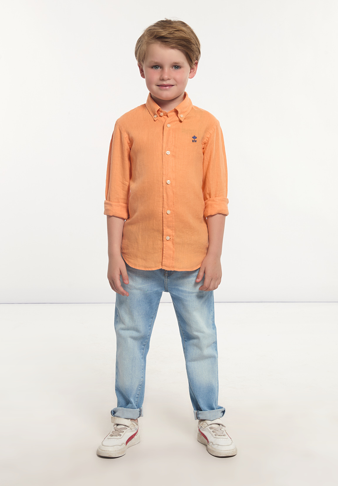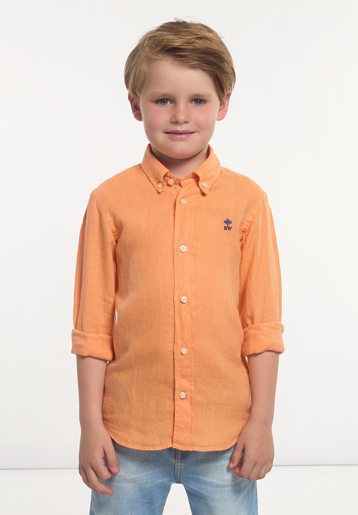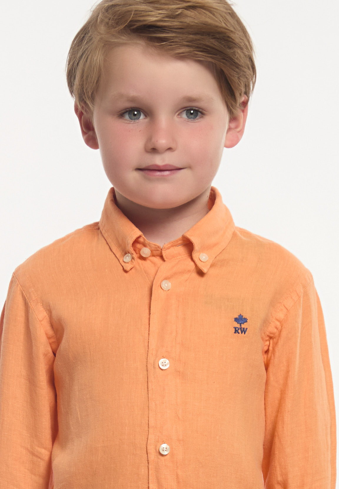 River Woods Boys Custom Fit Linen Shirt Peach | Orange
