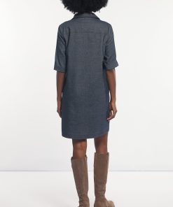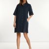 River Woods Women’s Cotton Embroidered Dress Elbow Sleeves Navy | Blue