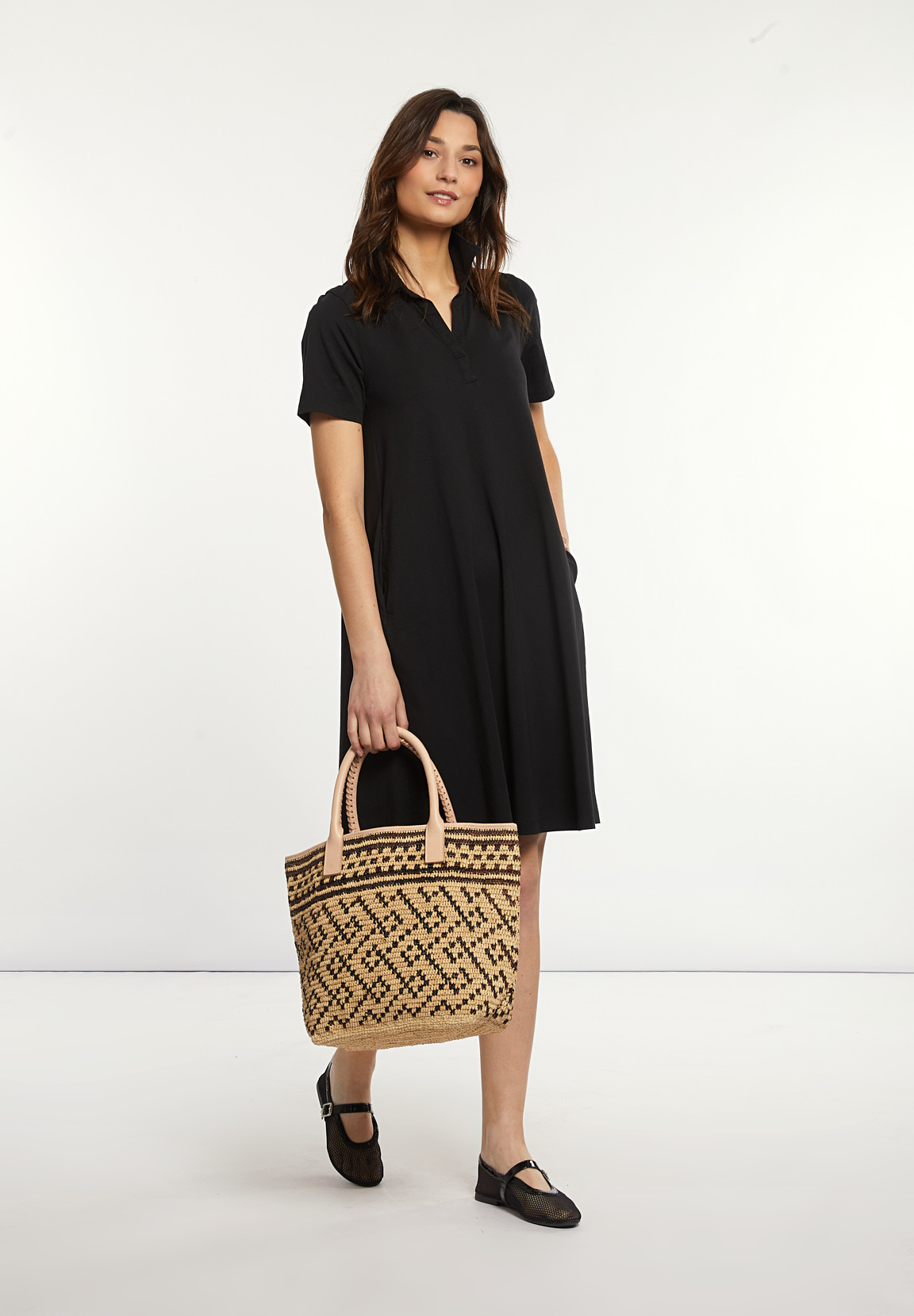 River Woods Women’s Cotton Loose V-neck Dress Black | Black